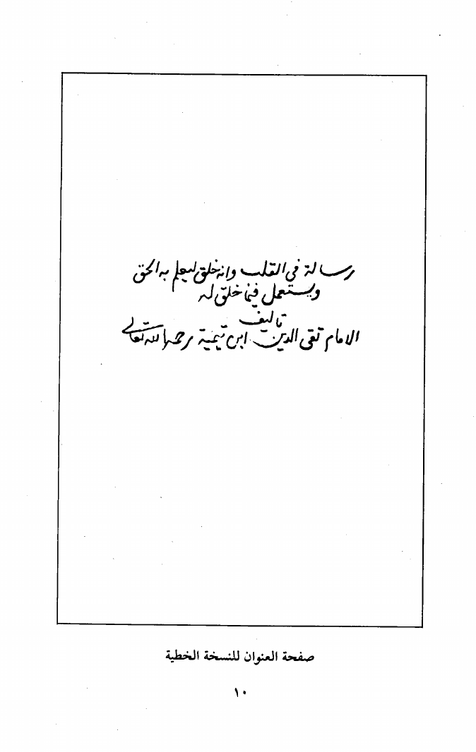 رسالة في القلب وأنه خلق ليعلم به الحق ويستعمل فيما خلق له