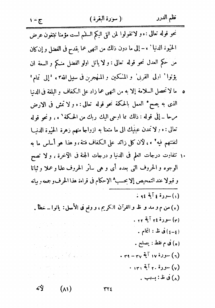 نظم الدرر في تناسب الآيات والسور
