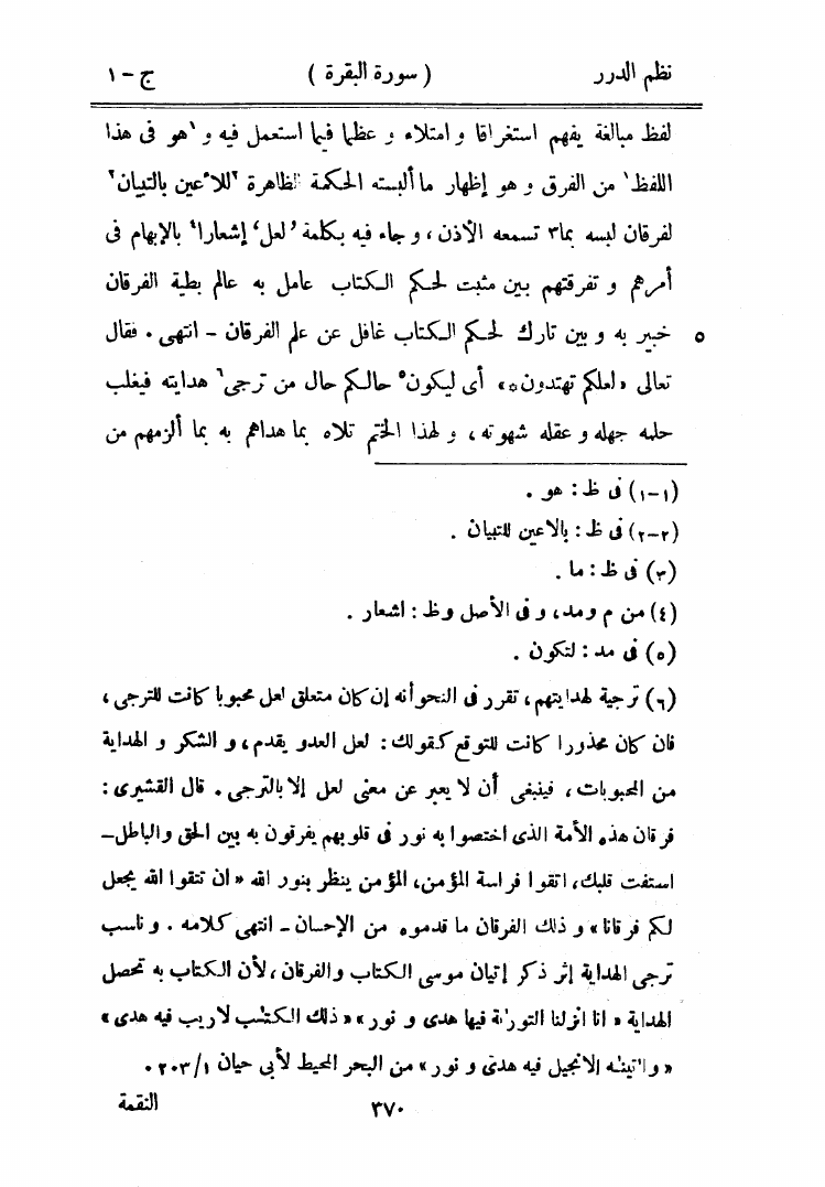 نظم الدرر في تناسب الآيات والسور