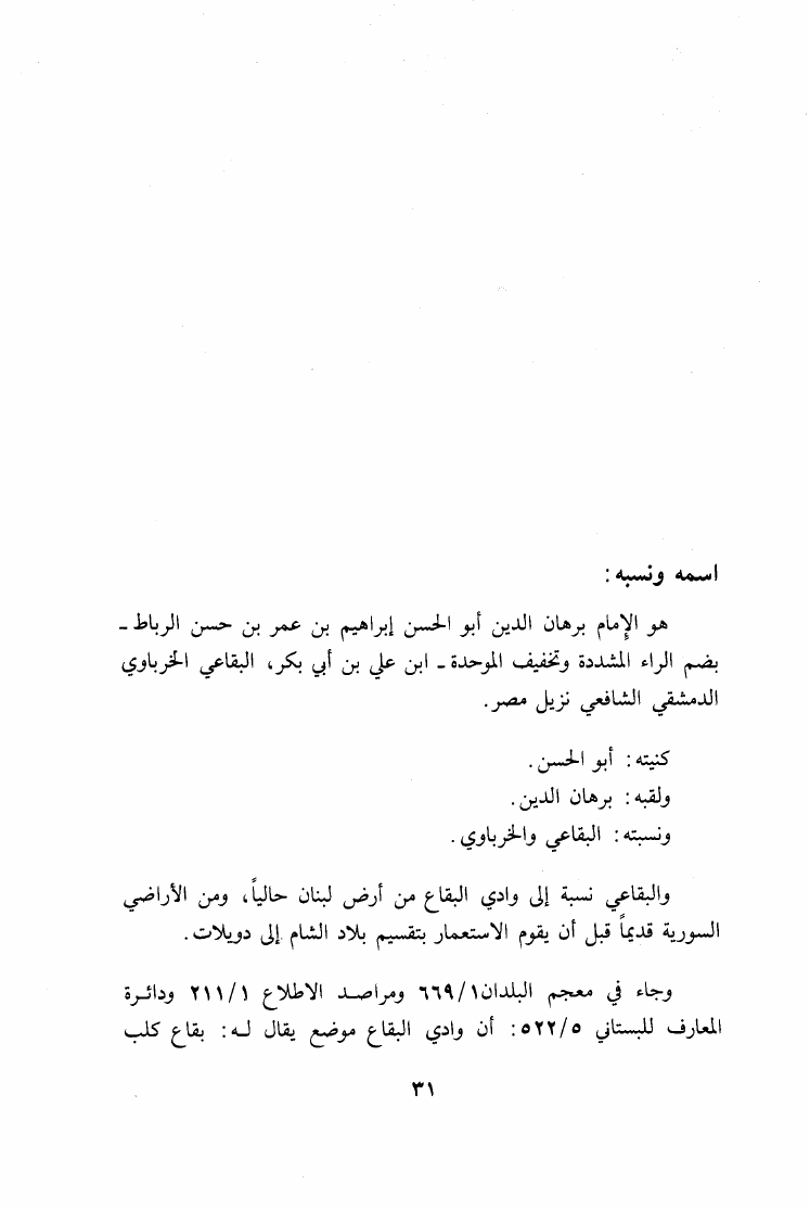 إبراهيم بن عمر البقاعي الشافعي برهان الدين أبو الحسن