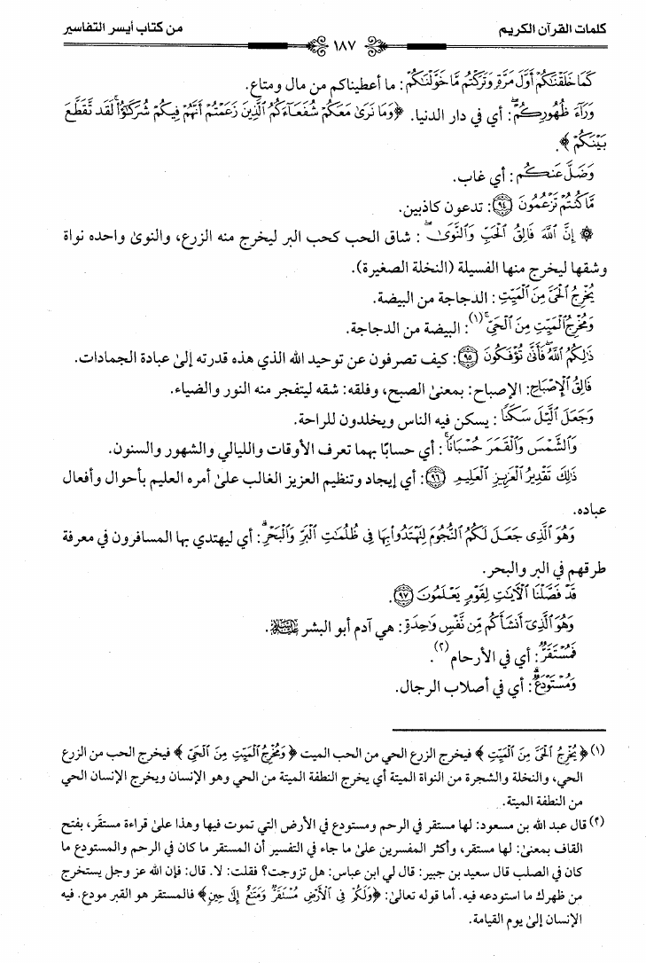 كلمات القرآن الكريم من كتاب أيسر التفاسير للجزائري