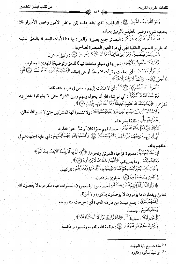 كلمات القرآن الكريم من كتاب أيسر التفاسير للجزائري