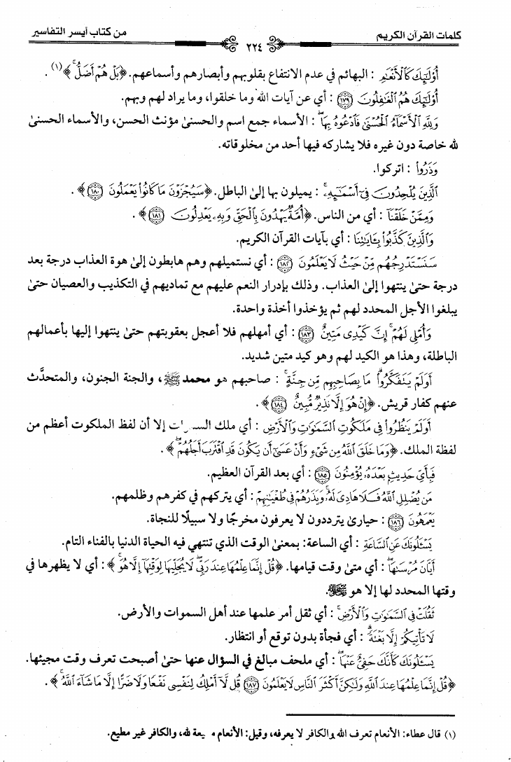 كلمات القرآن الكريم من كتاب أيسر التفاسير للجزائري