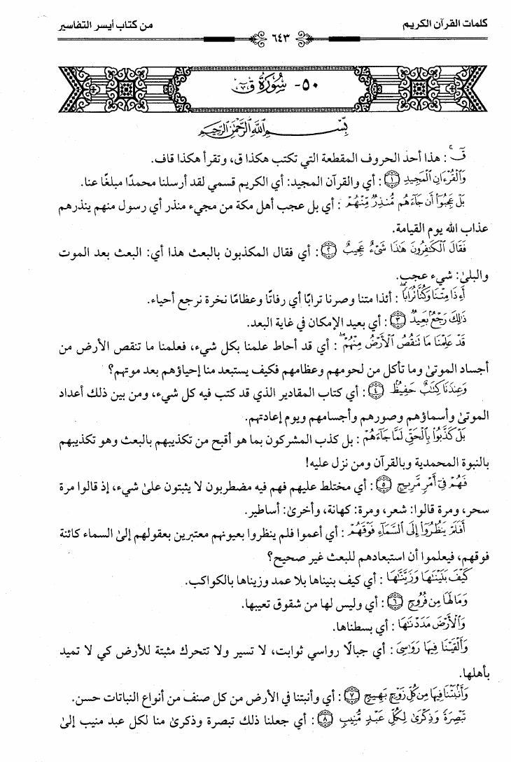كلمات القرآن الكريم من كتاب أيسر التفاسير للجزائري