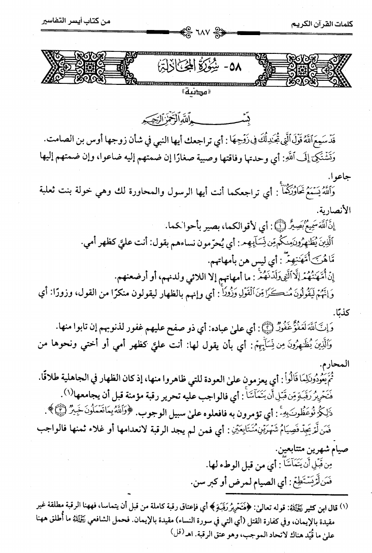 كلمات القرآن الكريم من كتاب أيسر التفاسير للجزائري