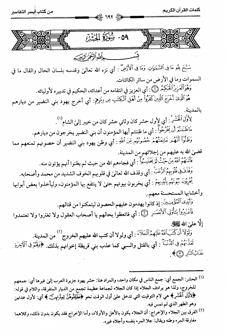كلمات القرآن الكريم من كتاب أيسر التفاسير للجزائري
