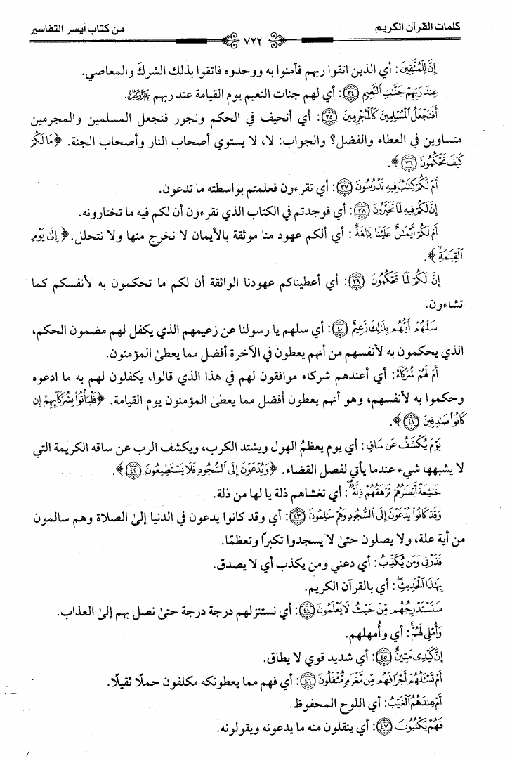 كلمات القرآن الكريم من كتاب أيسر التفاسير للجزائري