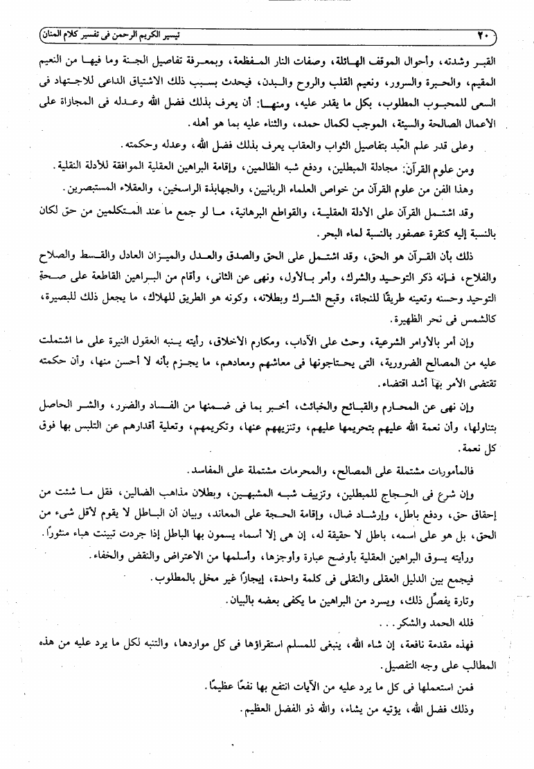 تيسير الكريم الرحمن في تفسير كلام المنان = تفسير السعدي (ط. الحديث)