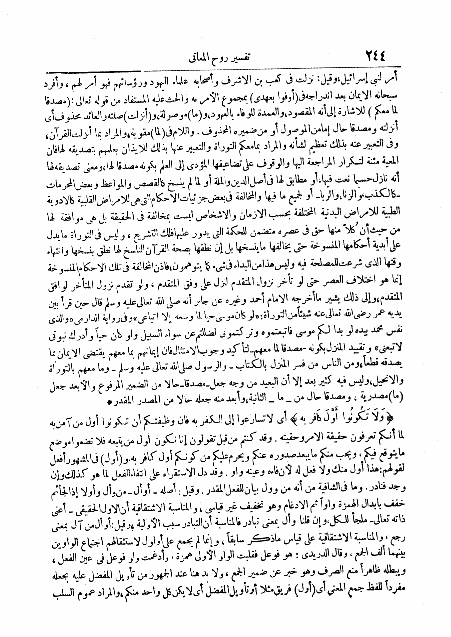 روح المعاني في تفسير القرآن الكريم والسبع المثاني (ط. المنيرية)