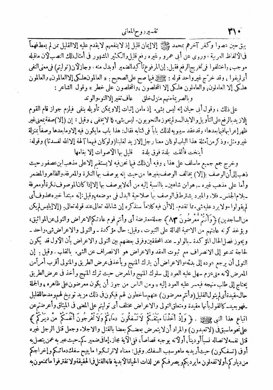 روح المعاني في تفسير القرآن الكريم والسبع المثاني (ط. المنيرية)