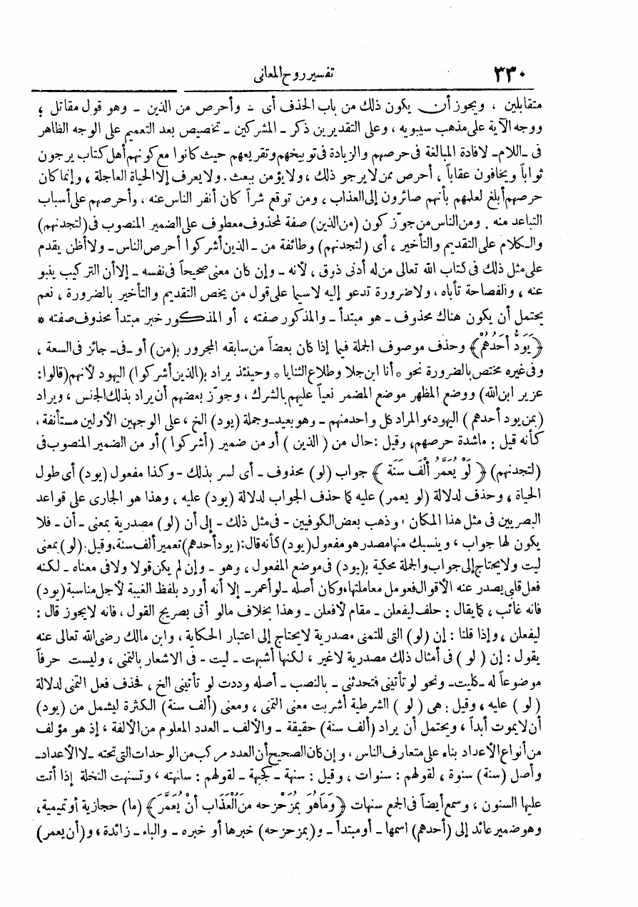 روح المعاني في تفسير القرآن الكريم والسبع المثاني (ط. المنيرية)