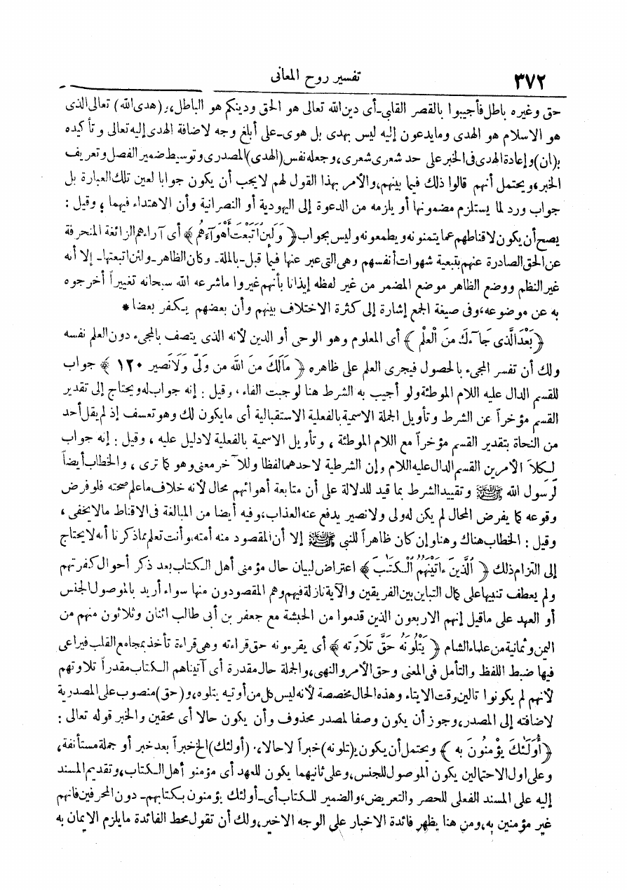 روح المعاني في تفسير القرآن الكريم والسبع المثاني (ط. المنيرية)