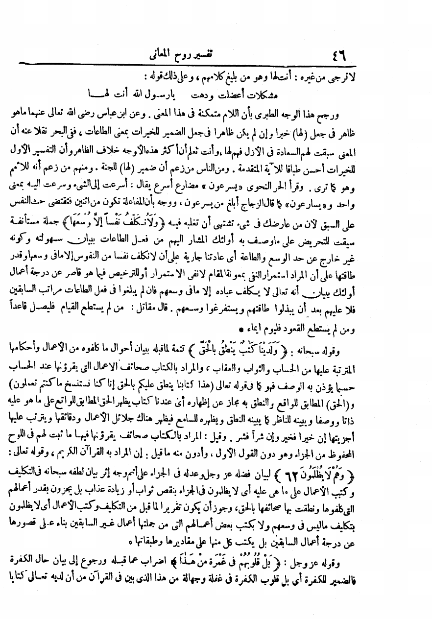 روح المعاني في تفسير القرآن الكريم والسبع المثاني (ط. المنيرية)