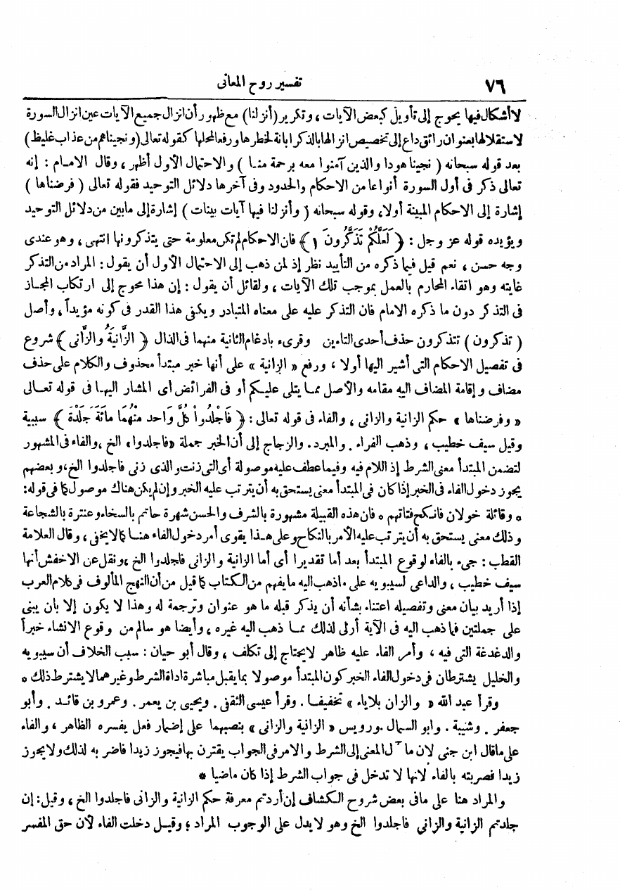 روح المعاني في تفسير القرآن الكريم والسبع المثاني (ط. المنيرية)