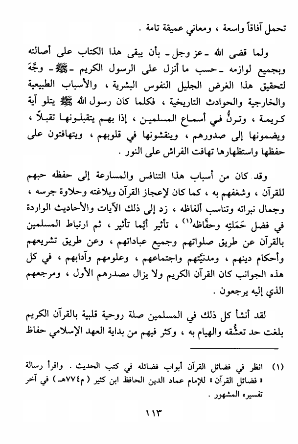 نام کتاب : المدخل إلى الدراسات القرآنية مبادئ تدبر القرآن والإنتفاع به أضواء على وجوه الإعجاز والعلوم القرآنية نویسنده : أبو الحسن علي الحسني الندوي جلد : 1 صفحه : 113