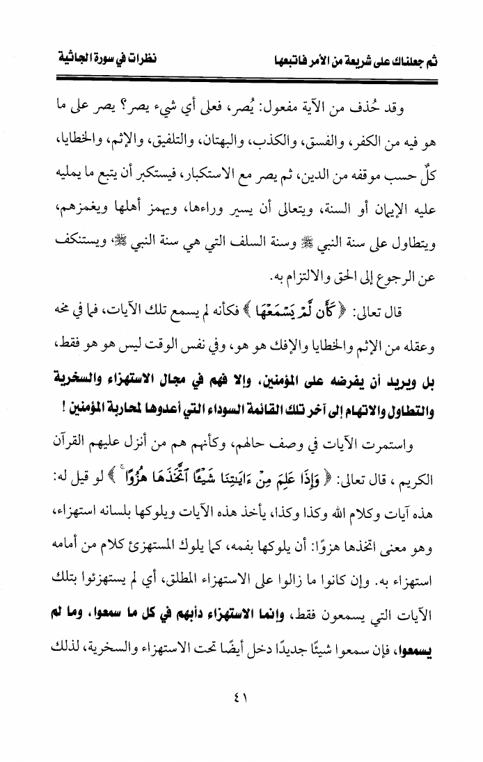 ثم جعلناك على شريعة من الأمر فاتبعها نظرات في سورة الجاثية