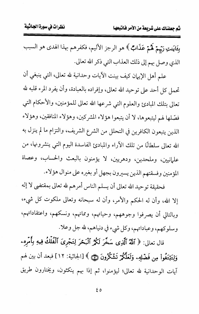 ثم جعلناك على شريعة من الأمر فاتبعها نظرات في سورة الجاثية