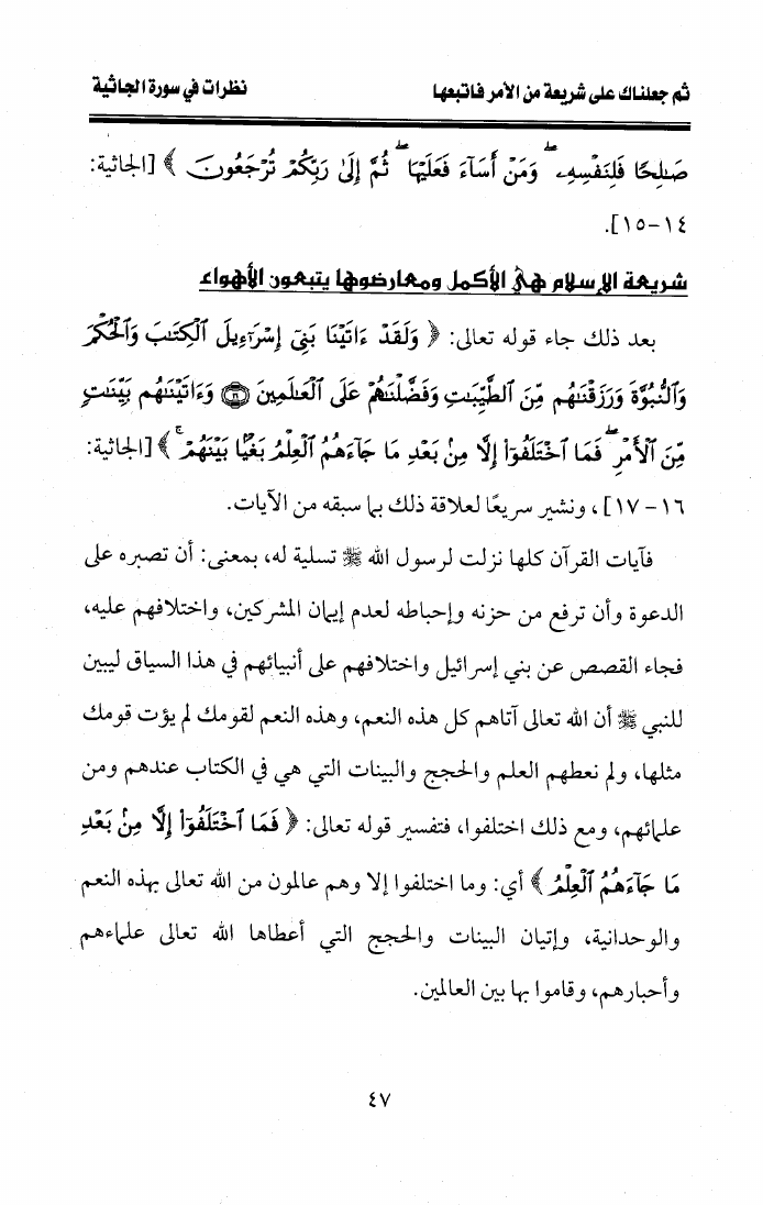 ثم جعلناك على شريعة من الأمر فاتبعها نظرات في سورة الجاثية