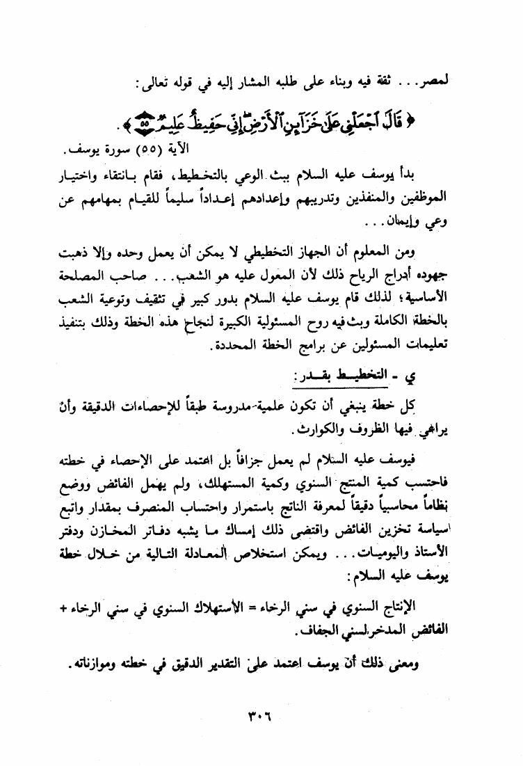 المنهج الإقتصادي في التخطيط لنبي الله يوسف عليه السلام