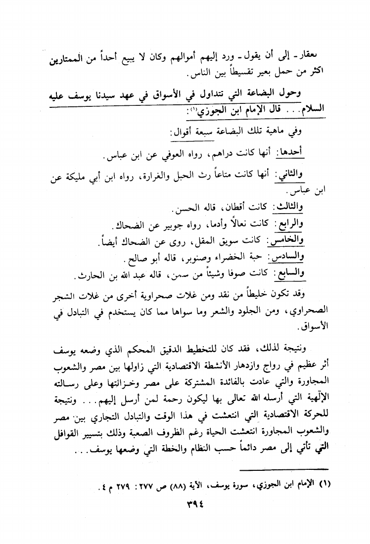 المنهج الإقتصادي في التخطيط لنبي الله يوسف عليه السلام