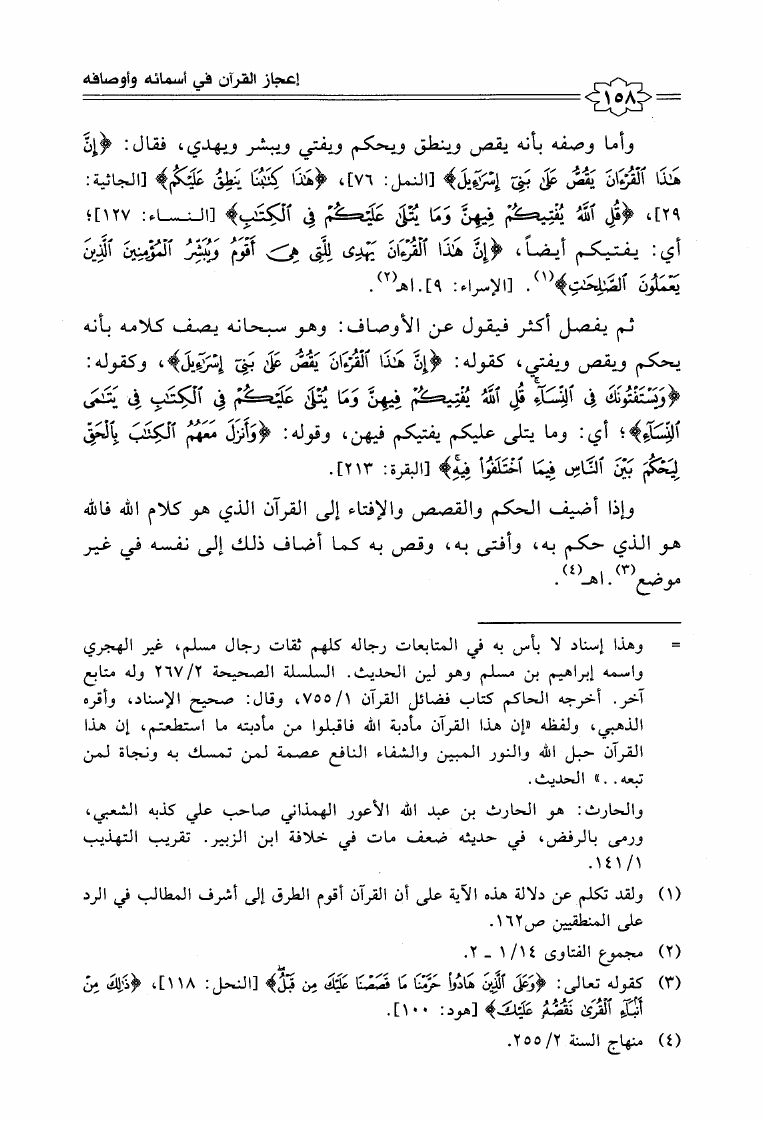 نام کتاب : إعجاز القرآن الكريم عند شيخ الإسلام ابن تيمية مع المقارنة بكتاب إعجاز القرآن للباقلاني نویسنده : محمد بن عبد العزيز العواجي جلد : 1 صفحه : 158