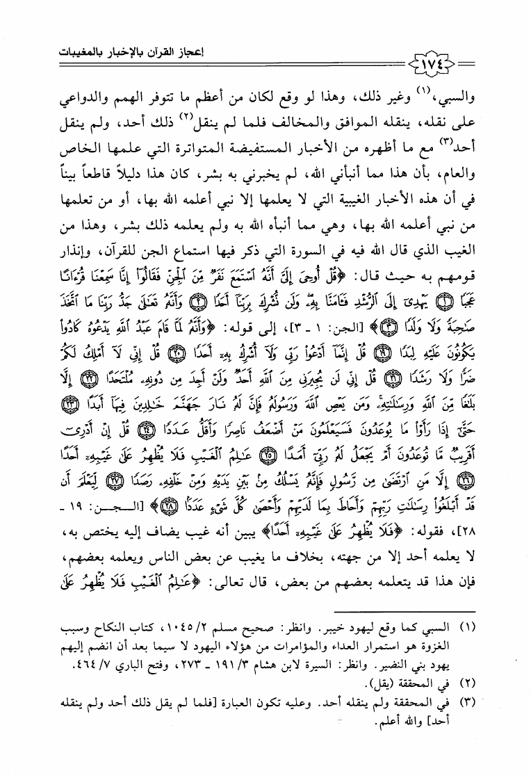 نام کتاب : إعجاز القرآن الكريم عند شيخ الإسلام ابن تيمية مع المقارنة بكتاب إعجاز القرآن للباقلاني نویسنده : محمد بن عبد العزيز العواجي جلد : 1 صفحه : 174