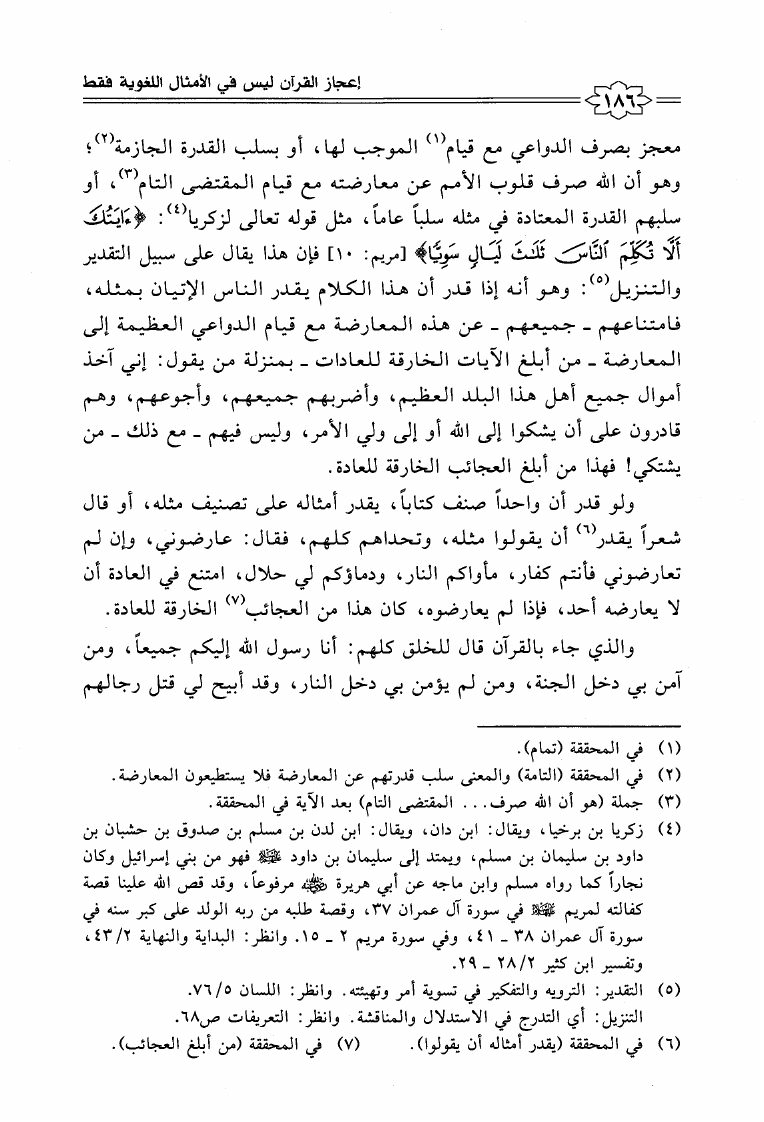 نام کتاب : إعجاز القرآن الكريم عند شيخ الإسلام ابن تيمية مع المقارنة بكتاب إعجاز القرآن للباقلاني نویسنده : محمد بن عبد العزيز العواجي جلد : 1 صفحه : 186