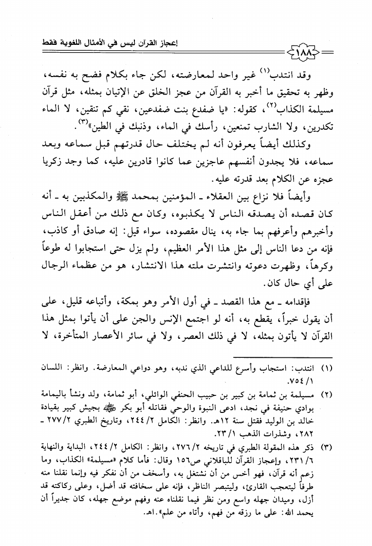 نام کتاب : إعجاز القرآن الكريم عند شيخ الإسلام ابن تيمية مع المقارنة بكتاب إعجاز القرآن للباقلاني نویسنده : محمد بن عبد العزيز العواجي جلد : 1 صفحه : 188