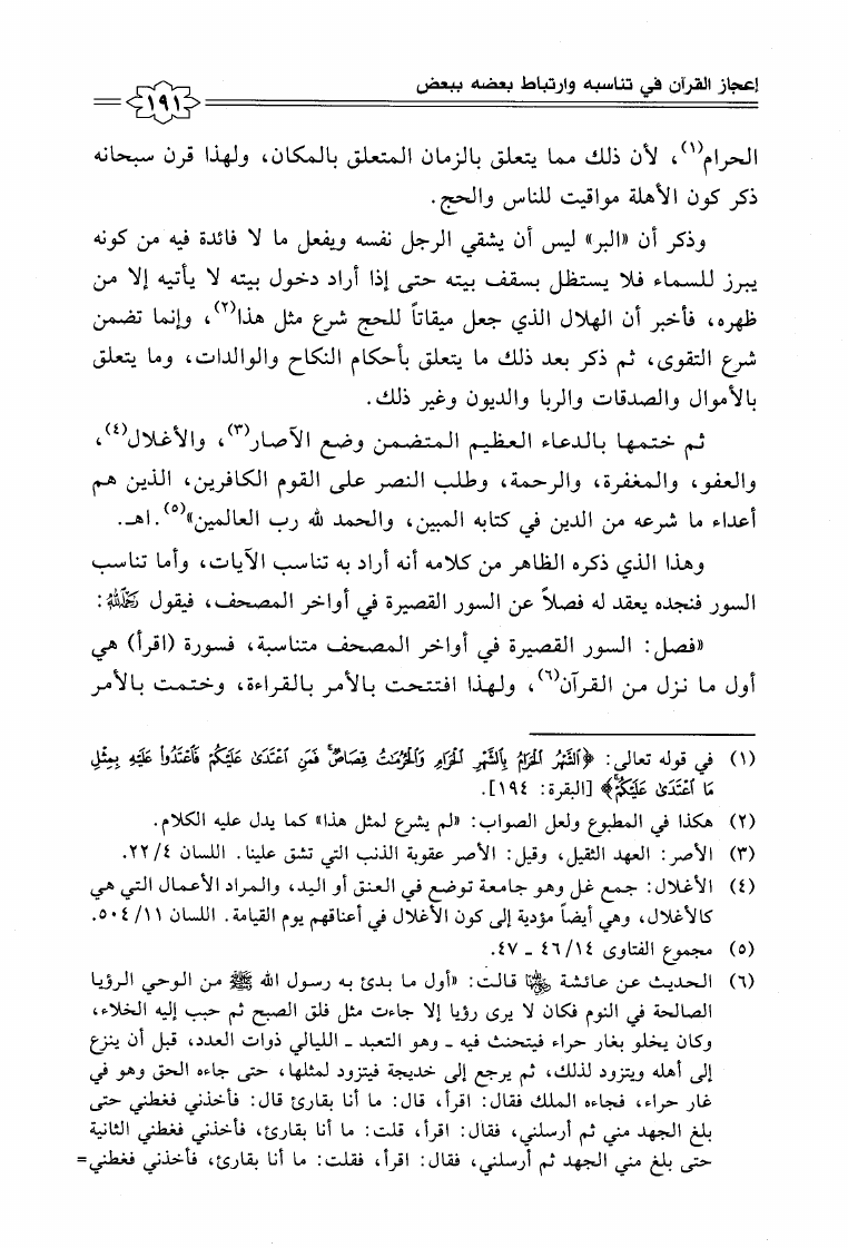 نام کتاب : إعجاز القرآن الكريم عند شيخ الإسلام ابن تيمية مع المقارنة بكتاب إعجاز القرآن للباقلاني نویسنده : محمد بن عبد العزيز العواجي جلد : 1 صفحه : 191