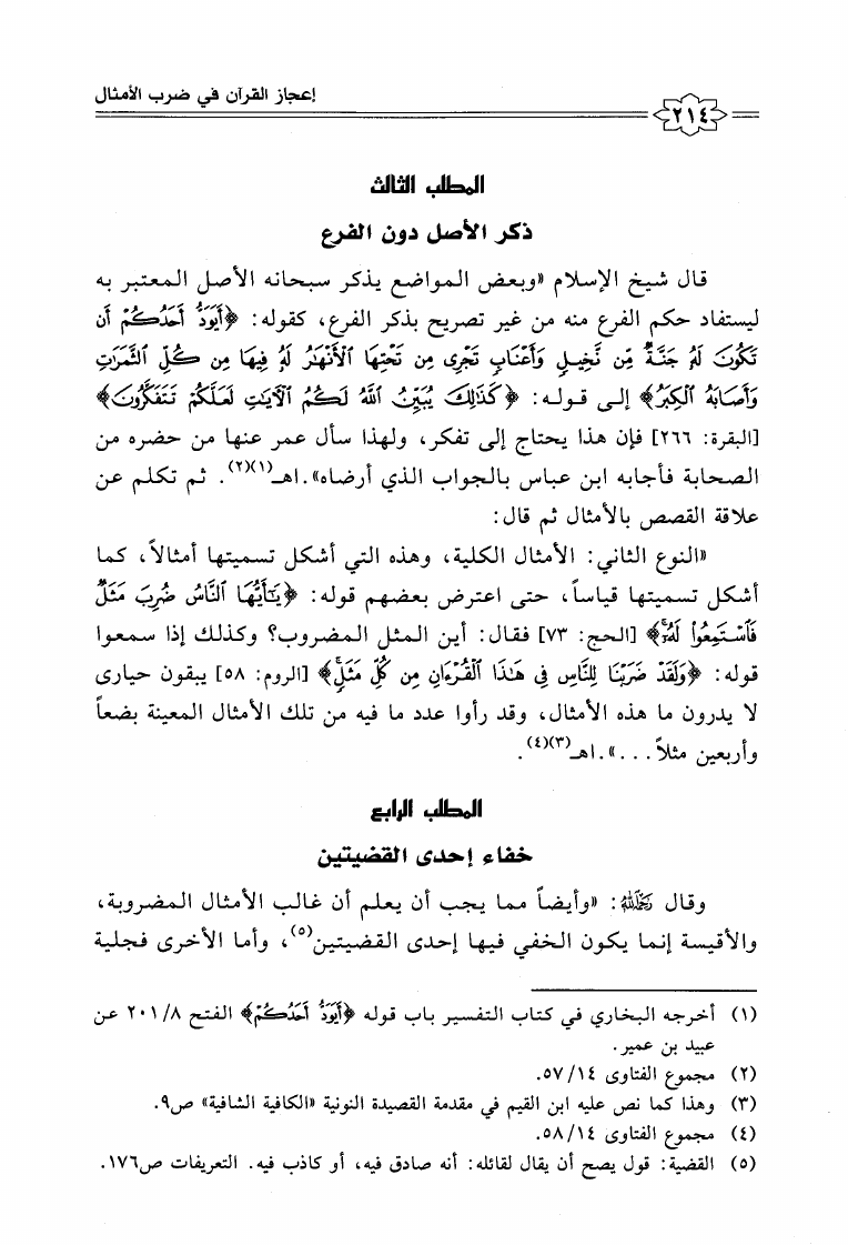 نام کتاب : إعجاز القرآن الكريم عند شيخ الإسلام ابن تيمية مع المقارنة بكتاب إعجاز القرآن للباقلاني نویسنده : محمد بن عبد العزيز العواجي جلد : 1 صفحه : 214