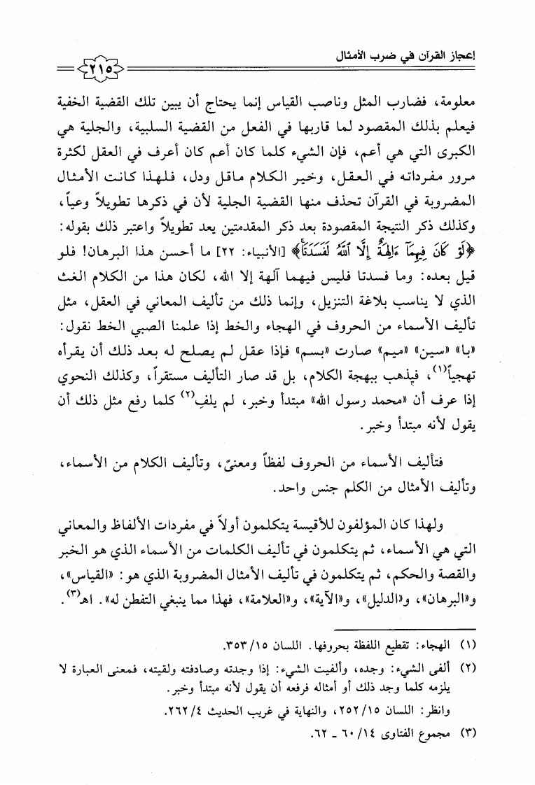 نام کتاب : إعجاز القرآن الكريم عند شيخ الإسلام ابن تيمية مع المقارنة بكتاب إعجاز القرآن للباقلاني نویسنده : محمد بن عبد العزيز العواجي جلد : 1 صفحه : 215