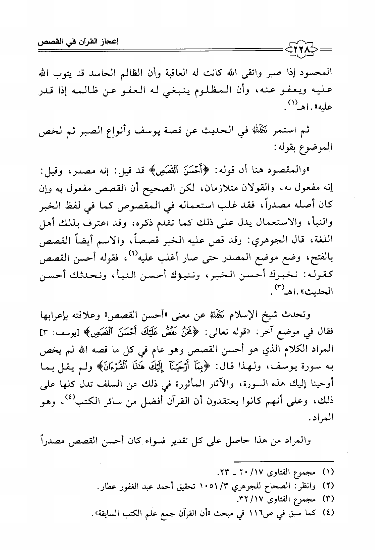 نام کتاب : إعجاز القرآن الكريم عند شيخ الإسلام ابن تيمية مع المقارنة بكتاب إعجاز القرآن للباقلاني نویسنده : محمد بن عبد العزيز العواجي جلد : 1 صفحه : 228