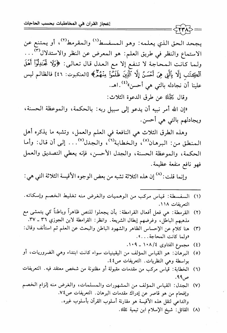 نام کتاب : إعجاز القرآن الكريم عند شيخ الإسلام ابن تيمية مع المقارنة بكتاب إعجاز القرآن للباقلاني نویسنده : محمد بن عبد العزيز العواجي جلد : 1 صفحه : 238
