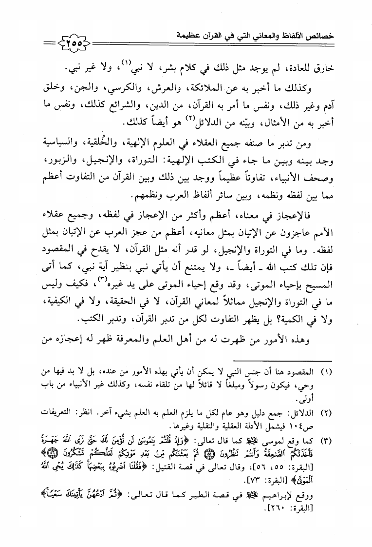 نام کتاب : إعجاز القرآن الكريم عند شيخ الإسلام ابن تيمية مع المقارنة بكتاب إعجاز القرآن للباقلاني نویسنده : محمد بن عبد العزيز العواجي جلد : 1 صفحه : 255