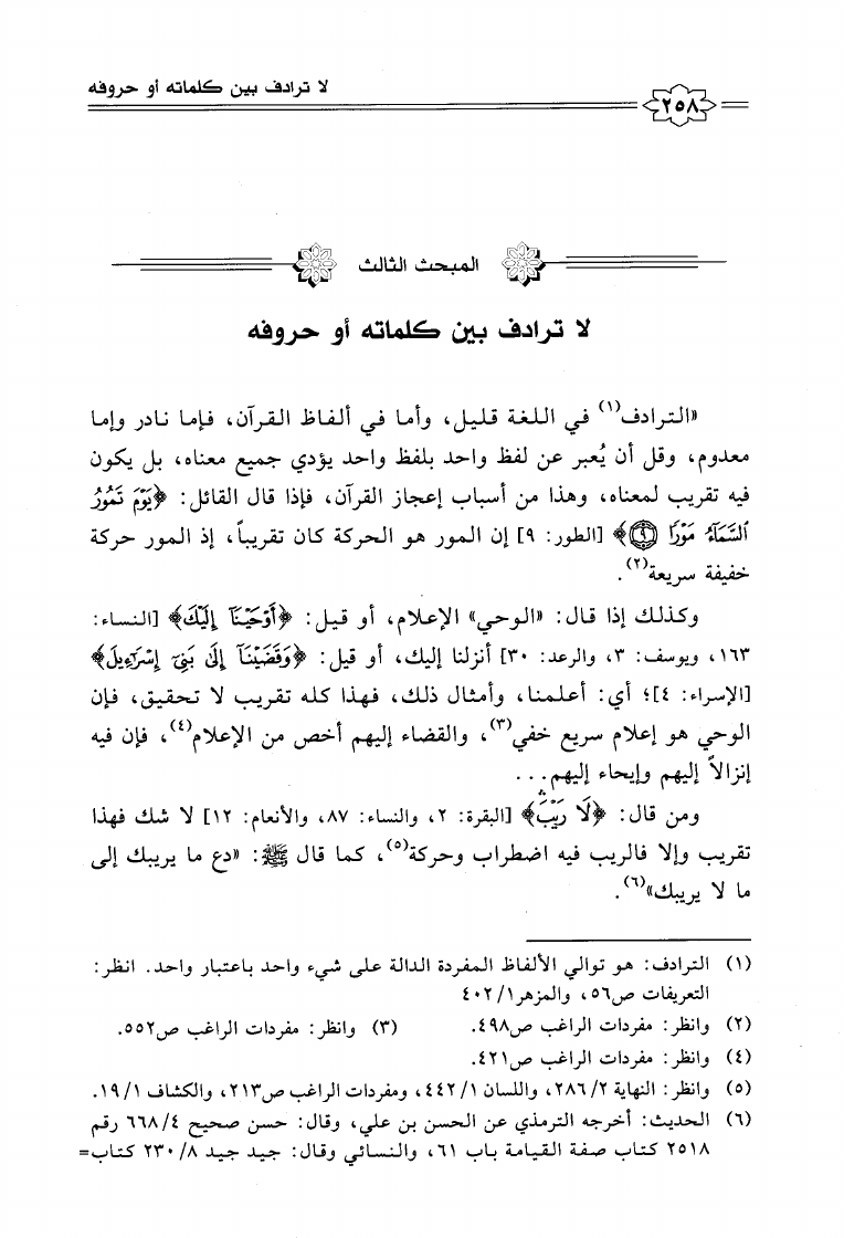 نام کتاب : إعجاز القرآن الكريم عند شيخ الإسلام ابن تيمية مع المقارنة بكتاب إعجاز القرآن للباقلاني نویسنده : محمد بن عبد العزيز العواجي جلد : 1 صفحه : 258