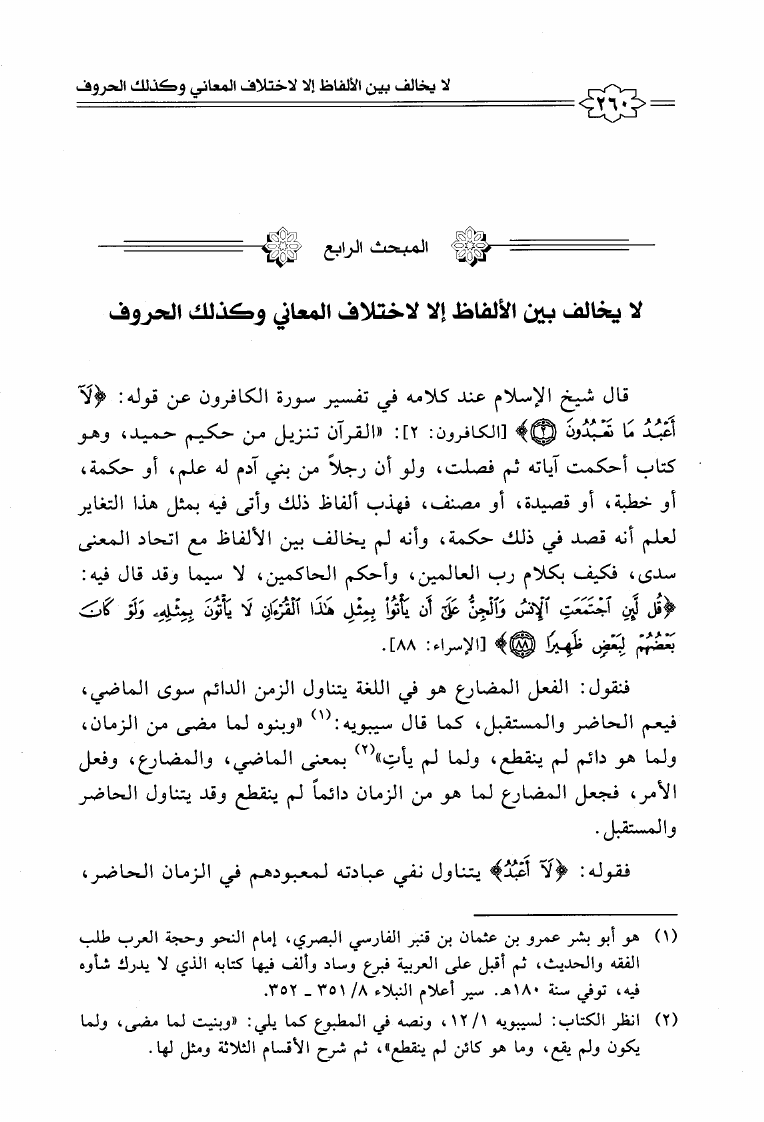 نام کتاب : إعجاز القرآن الكريم عند شيخ الإسلام ابن تيمية مع المقارنة بكتاب إعجاز القرآن للباقلاني نویسنده : محمد بن عبد العزيز العواجي جلد : 1 صفحه : 260