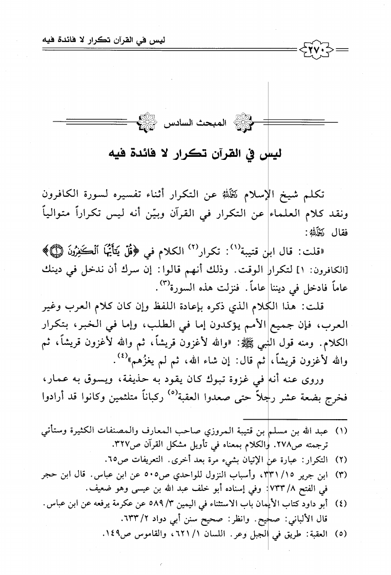 نام کتاب : إعجاز القرآن الكريم عند شيخ الإسلام ابن تيمية مع المقارنة بكتاب إعجاز القرآن للباقلاني نویسنده : محمد بن عبد العزيز العواجي جلد : 1 صفحه : 270