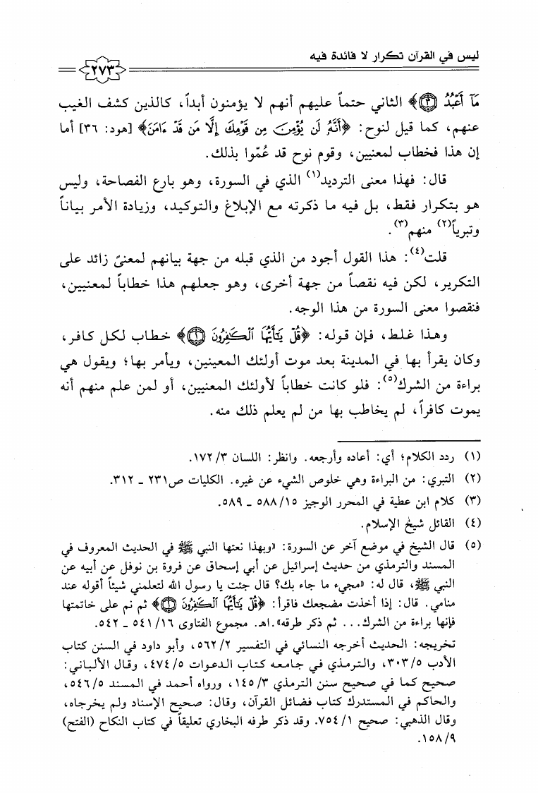 نام کتاب : إعجاز القرآن الكريم عند شيخ الإسلام ابن تيمية مع المقارنة بكتاب إعجاز القرآن للباقلاني نویسنده : محمد بن عبد العزيز العواجي جلد : 1 صفحه : 273
