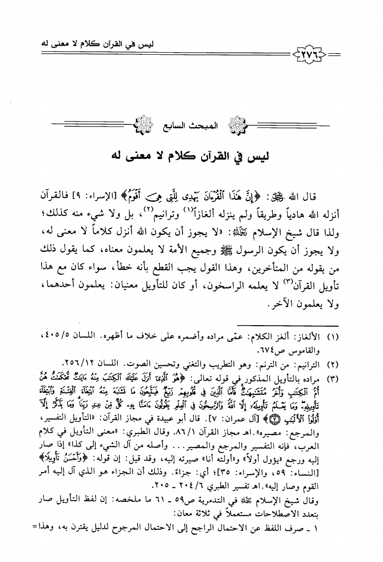 نام کتاب : إعجاز القرآن الكريم عند شيخ الإسلام ابن تيمية مع المقارنة بكتاب إعجاز القرآن للباقلاني نویسنده : محمد بن عبد العزيز العواجي جلد : 1 صفحه : 276