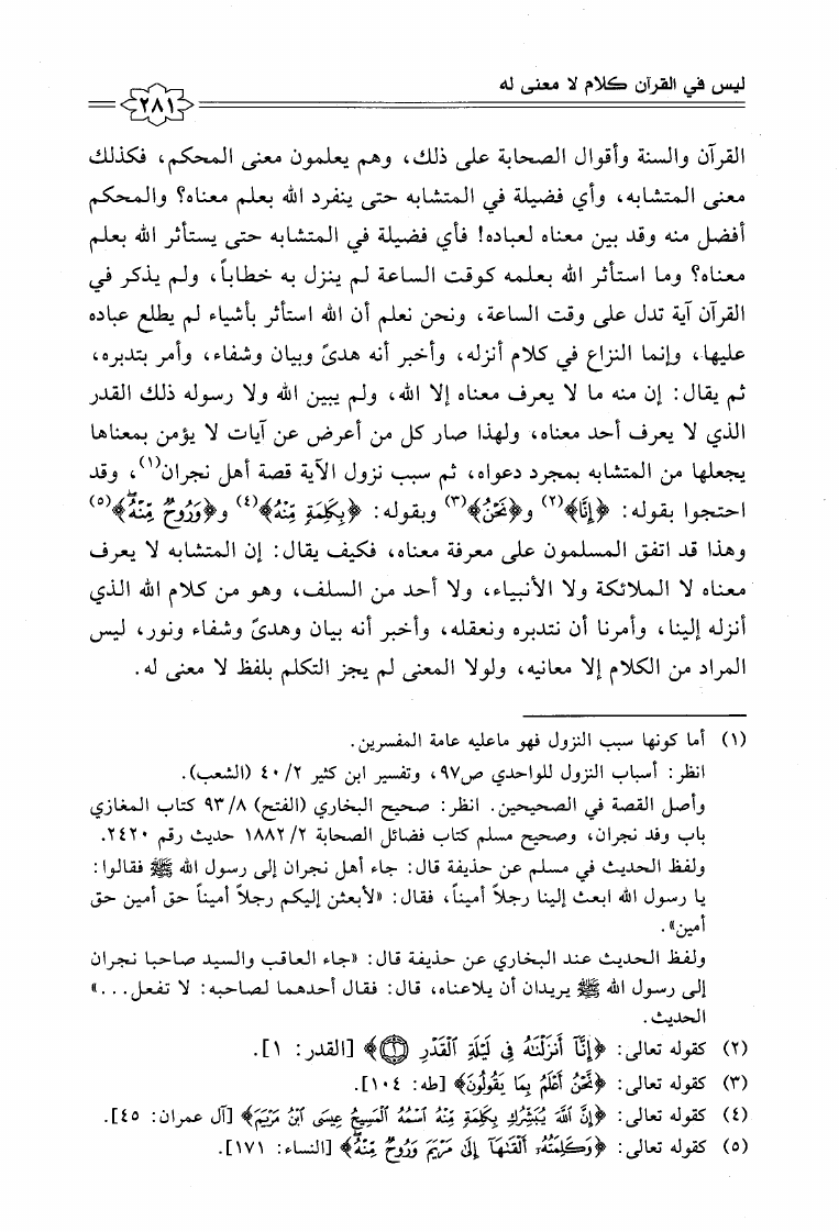 نام کتاب : إعجاز القرآن الكريم عند شيخ الإسلام ابن تيمية مع المقارنة بكتاب إعجاز القرآن للباقلاني نویسنده : محمد بن عبد العزيز العواجي جلد : 1 صفحه : 281