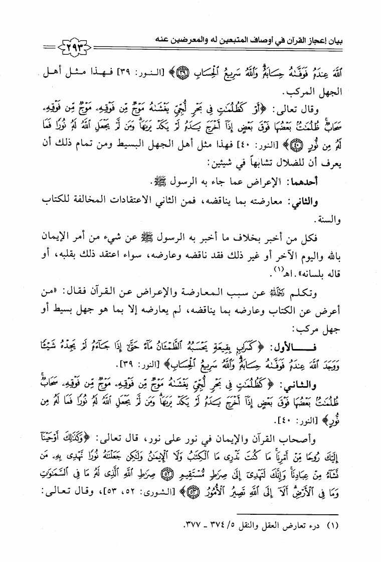 نام کتاب : إعجاز القرآن الكريم عند شيخ الإسلام ابن تيمية مع المقارنة بكتاب إعجاز القرآن للباقلاني نویسنده : محمد بن عبد العزيز العواجي جلد : 1 صفحه : 293