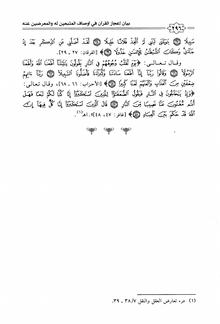 نام کتاب : إعجاز القرآن الكريم عند شيخ الإسلام ابن تيمية مع المقارنة بكتاب إعجاز القرآن للباقلاني نویسنده : محمد بن عبد العزيز العواجي جلد : 1 صفحه : 296