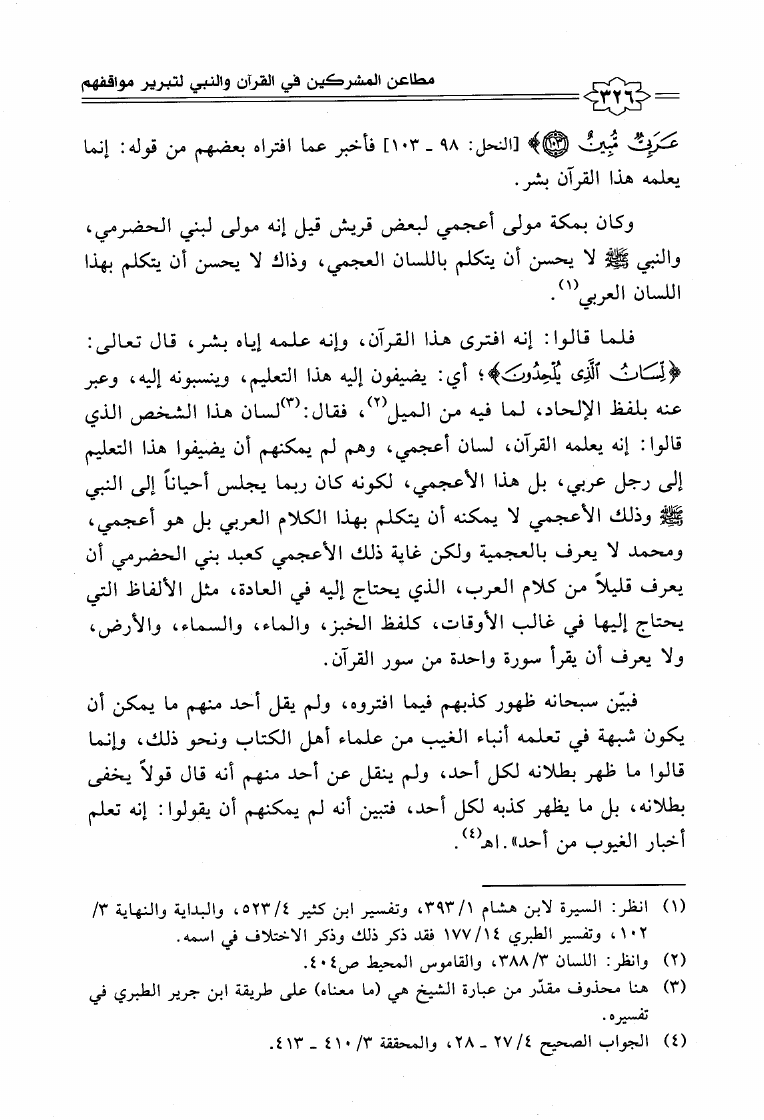 نام کتاب : إعجاز القرآن الكريم عند شيخ الإسلام ابن تيمية مع المقارنة بكتاب إعجاز القرآن للباقلاني نویسنده : محمد بن عبد العزيز العواجي جلد : 1 صفحه : 326