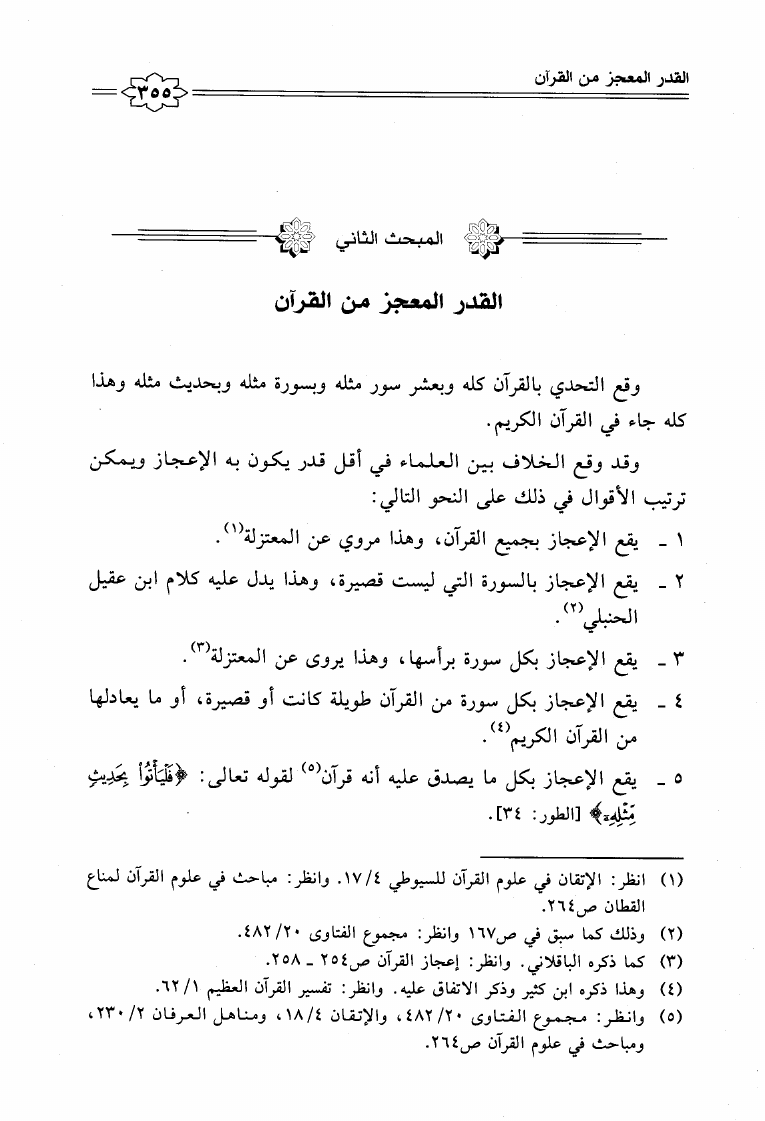 نام کتاب : إعجاز القرآن الكريم عند شيخ الإسلام ابن تيمية مع المقارنة بكتاب إعجاز القرآن للباقلاني نویسنده : محمد بن عبد العزيز العواجي جلد : 1 صفحه : 355