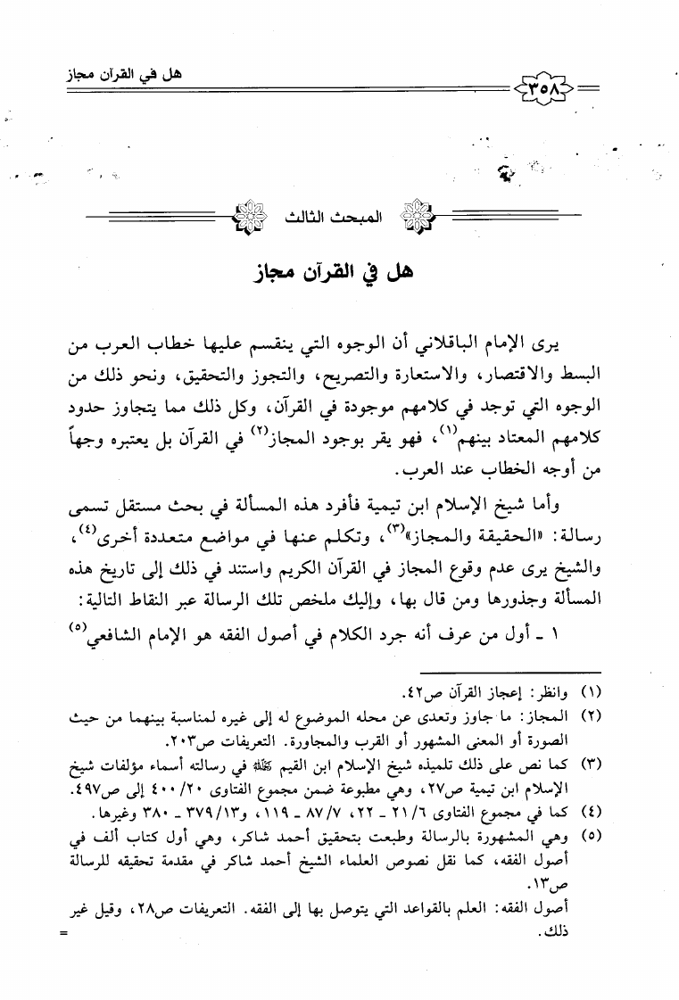 نام کتاب : إعجاز القرآن الكريم عند شيخ الإسلام ابن تيمية مع المقارنة بكتاب إعجاز القرآن للباقلاني نویسنده : محمد بن عبد العزيز العواجي جلد : 1 صفحه : 358