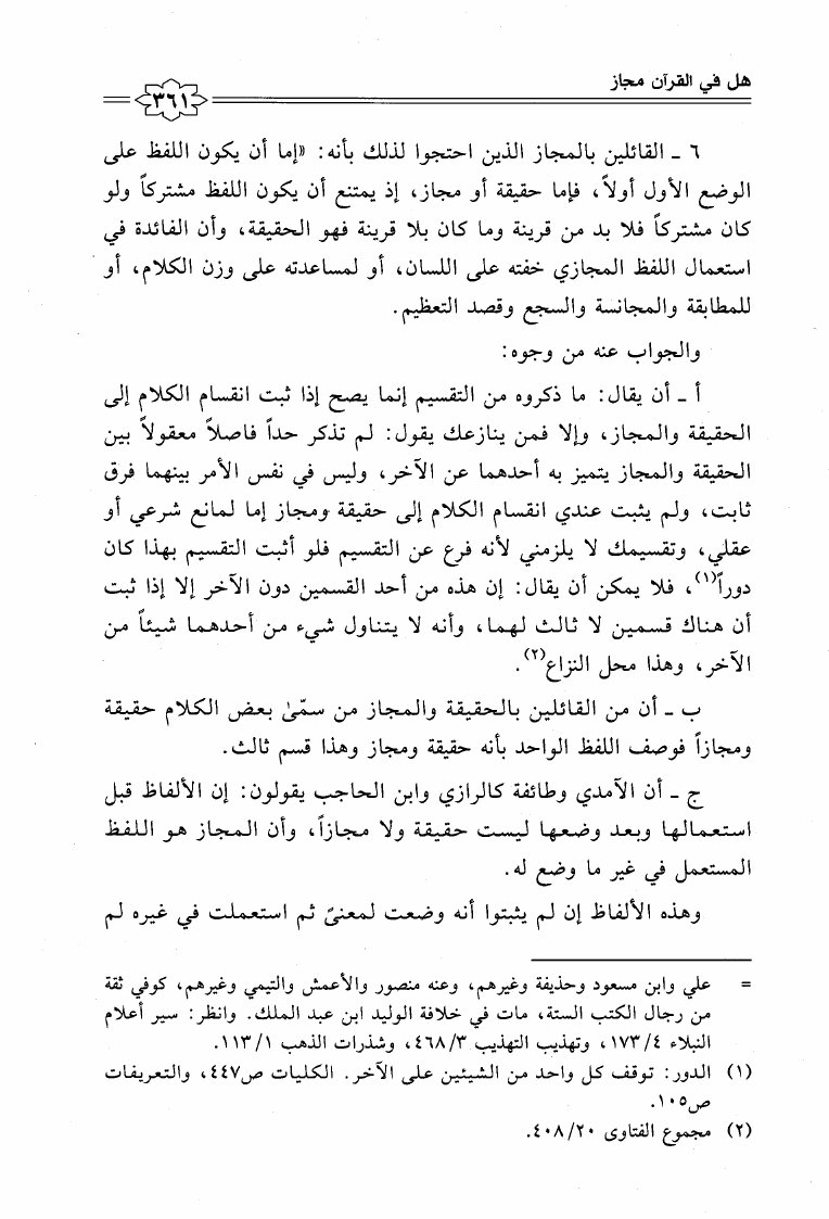 نام کتاب : إعجاز القرآن الكريم عند شيخ الإسلام ابن تيمية مع المقارنة بكتاب إعجاز القرآن للباقلاني نویسنده : محمد بن عبد العزيز العواجي جلد : 1 صفحه : 361
