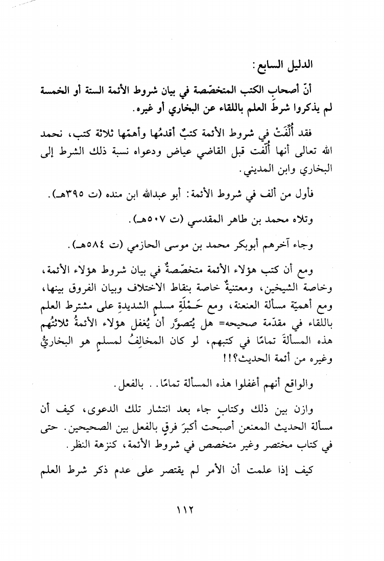 نام کتاب : إجماع المحدثين على عدم اشتراط العلم بالسماع في الحديث المعنعن بين المتعاصرين نویسنده : حاتم بن عارف بن ناصر الشريف العوني جلد : 1 صفحه : 112