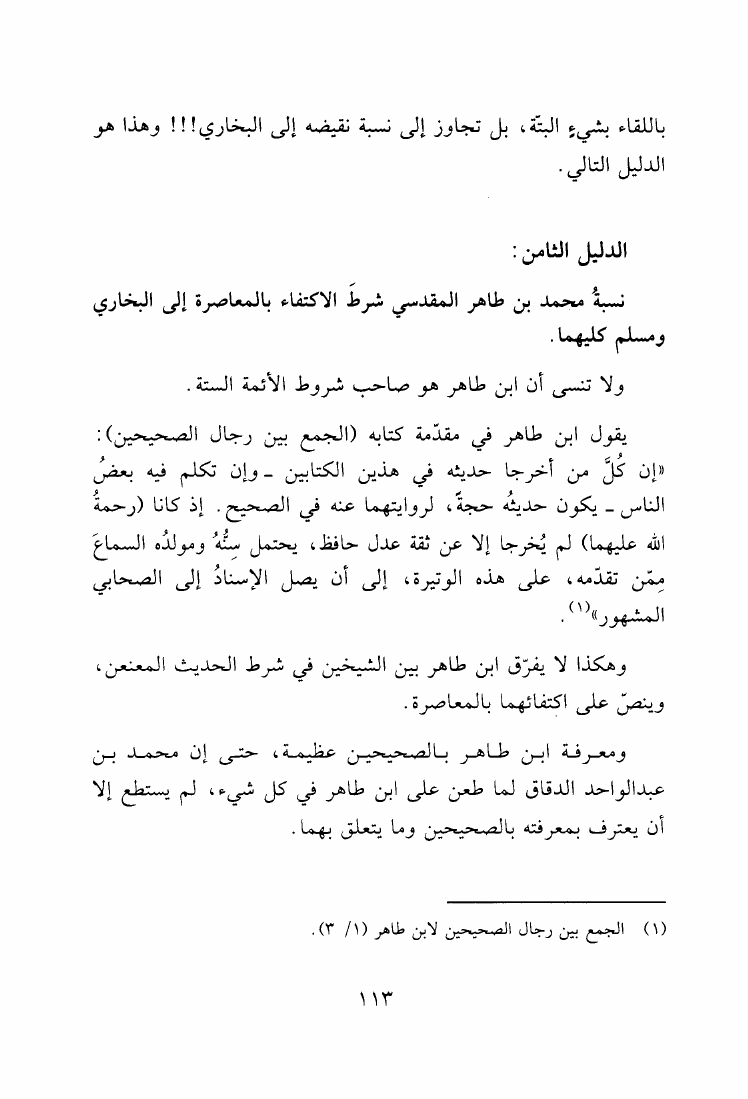 نام کتاب : إجماع المحدثين على عدم اشتراط العلم بالسماع في الحديث المعنعن بين المتعاصرين نویسنده : حاتم بن عارف بن ناصر الشريف العوني جلد : 1 صفحه : 113