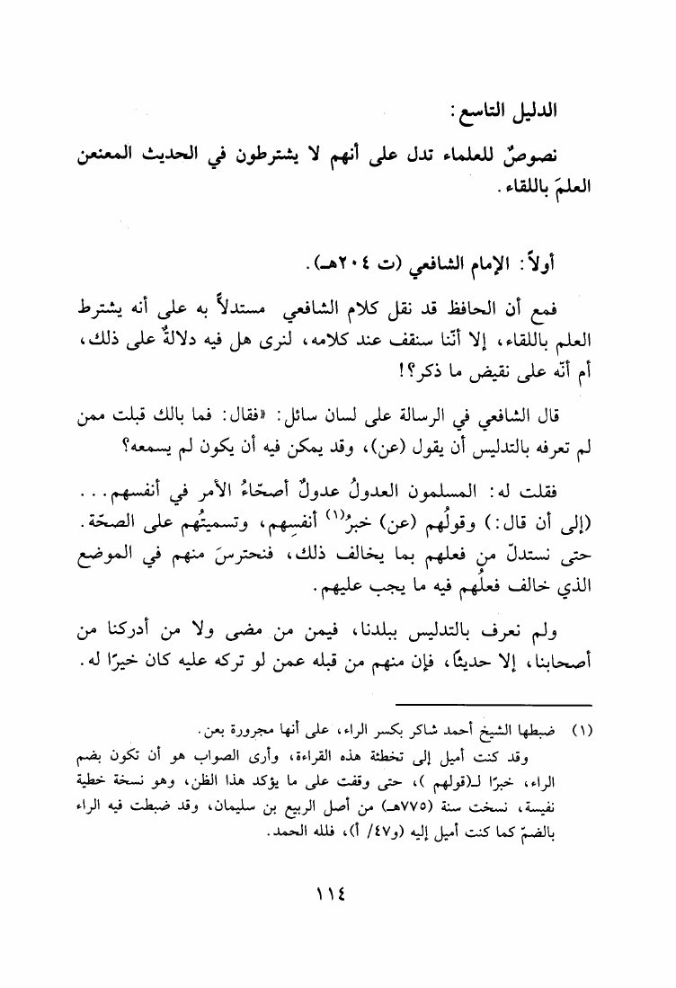 نام کتاب : إجماع المحدثين على عدم اشتراط العلم بالسماع في الحديث المعنعن بين المتعاصرين نویسنده : حاتم بن عارف بن ناصر الشريف العوني جلد : 1 صفحه : 114