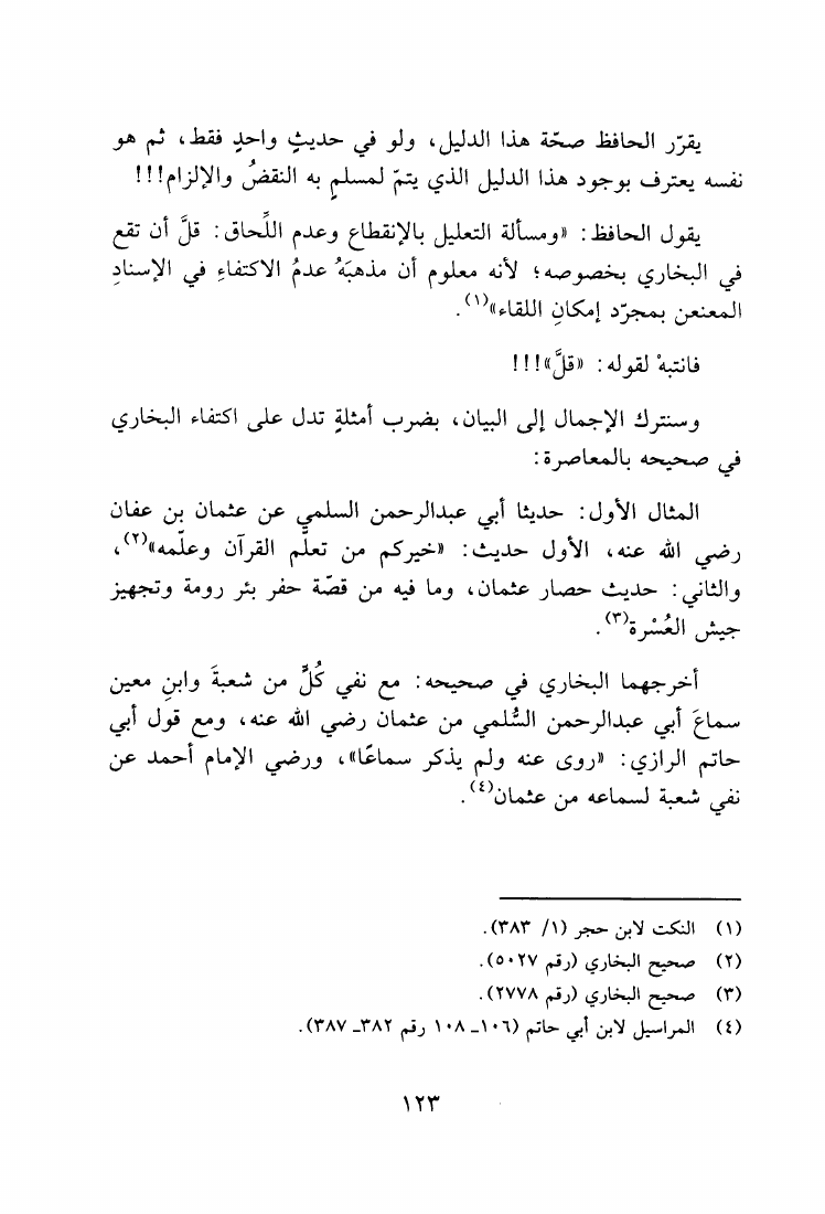 نام کتاب : إجماع المحدثين على عدم اشتراط العلم بالسماع في الحديث المعنعن بين المتعاصرين نویسنده : حاتم بن عارف بن ناصر الشريف العوني جلد : 1 صفحه : 123